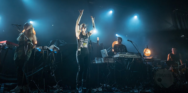 Much has been made of a departure in the third album towards an indie rock style, away from electronica: The Guardian even described it as 'Radiohead tinged'. There's certainly a greater place for guitars and and synths, alongside minimal beats in the new material, exemplified in Pleasure in Pleather. Whilst his vocal range is relatively limited, with a low pitch and tendency towards spoken enunciation, Ghostpoet is at pains to emphasise that he is not an MC. This show felt very much a collaborative, band effort: in particular the female vocalist and keyboard player added atmosphere in the tracks such as X Marks The Spot, which in the studio featured Nadine Shah. This was the point last night when the performance really took flight. The material ranged widely over the three albums, yet felt coherent, suggesting that talk of a radical departure in Shedding Skin has been emphasised.